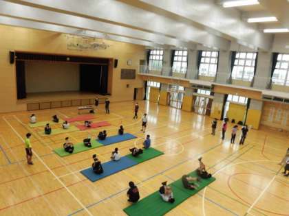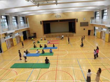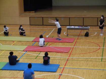 校内研究会に引き続き、若手の先生方を中心に、細越先生からマット運動の実技指導を受けました。