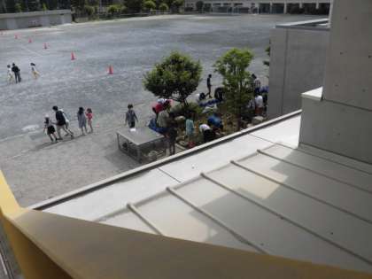 学校のために働く5・6年生。下級生のお手本ですね。立派です。