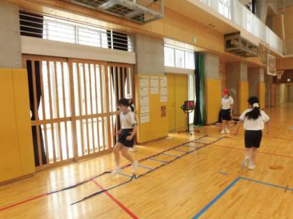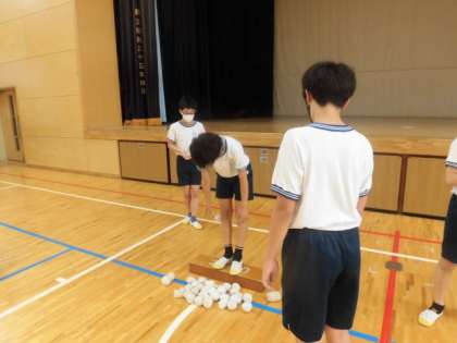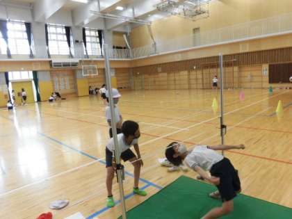6月3日(木)6校時、体育館では6年2組の子供たちが体育の学習を行っていました。