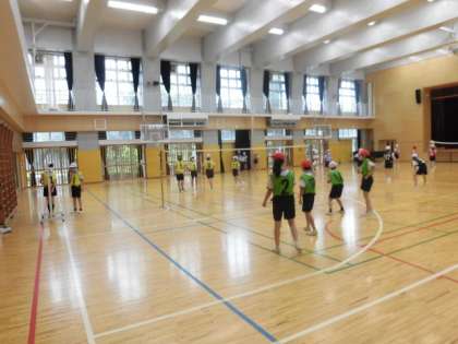 6月4日(金)4校時、体育館では6年5組の子供たちが体育の学習を行っていました。