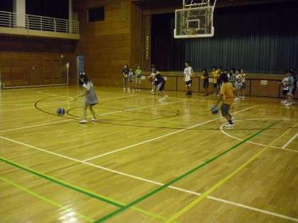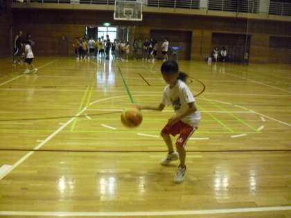 正面でドリブルをするのではなく、横でボールをつくためにカニ歩きをしながらドリブルをしています。