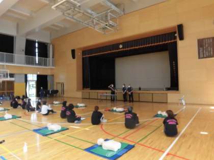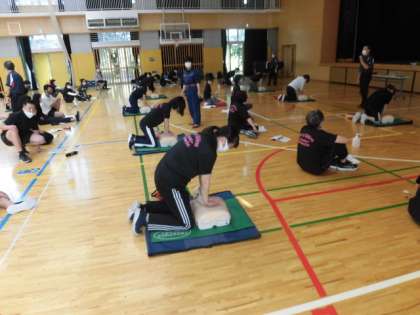 胸骨圧迫や人工呼吸、AEDの使い方など、演習を通して学びました。安心・安全に子供たちが水泳指導に取り組めるよう、先生方は真剣に講習を受けていました。