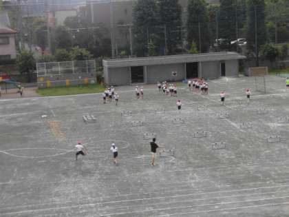 6月8日(火)6校時、校庭では5年1組の子供たちが体育の学習をしていました。