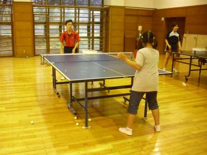 卓球部の生徒にボールをトスしてもらい、それを打つ練習をくり返し行いました。2時間たっぷりと卓球台を使って卓球を楽しみました。