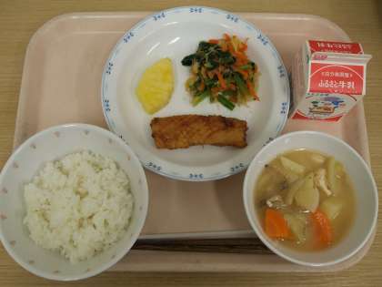 「打ち豆」は、大豆の加工品の一つです。今日は具だくさんのみそ汁にしました。火通りが早いため、煮過ぎて形がなくならないように気を付けながら作りました。具が多くていろいろな味わいのするみそ汁でした。