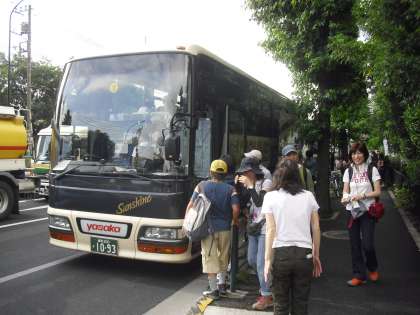 環状8号線で待つ3台のバスに乗車です。保護者の方々もたくさん見送りに来ていました。予定通り7時30分に、6年生は日光へ出発しました。