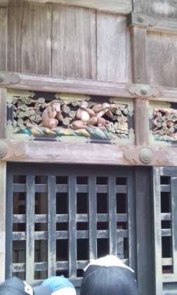 最後lは三猿と眠り猫です。「見ざる、言わざる、聞かざる」の原型の猿と、左甚五郎の眠り猫を「これがそうなんだ」と感動しながら見つめていました。
