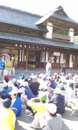 華厳の滝に到着しました。エレベーターで地上から100m下がり、ドアが開いたとたんに冷気を感じみんな歓声をあげていました。