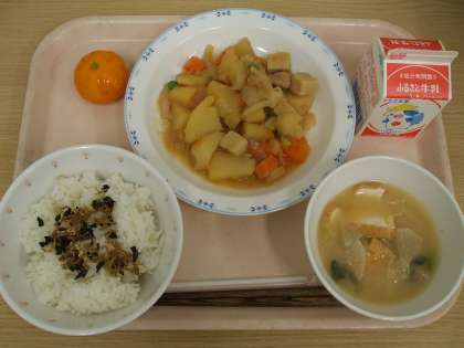 雨が降ったり止んだり、蒸し蒸しした一日になっています。こんな日は、ヒヤッと冷たい「冷凍みかん」が嬉しいですね。みなさん、スムーズに配膳を終えて、少しでも冷たいうちに味わえたでしょうか。