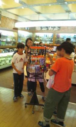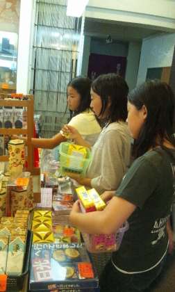 お土産物は、たっぷり時間をかけて選んでいます。「これは、お姉ちゃん、これは…」と言いながら電卓片手に一生懸命です。