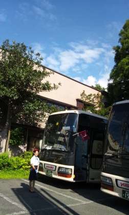 写真に写っているのは、3日間お世話になる1号車のガイドさんです。