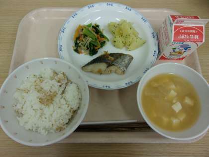 米(茨城)、さわら(長崎)、豆腐(東京)、油揚げ(神奈川)、白ごま(スーダン・パラグアイ)、しょうが(高知)、ねぎ・じゃがいも(茨城)、パセリ・にんじん(千葉)、小松菜(群馬)、もやし(栃木)、大根(北海道)