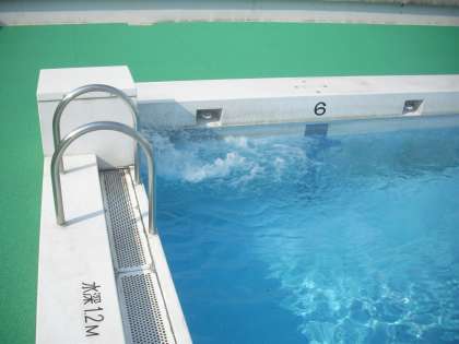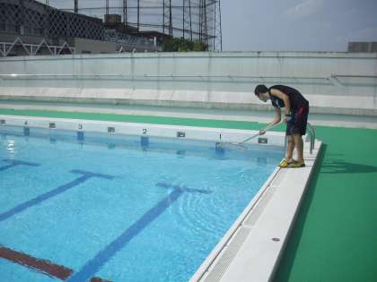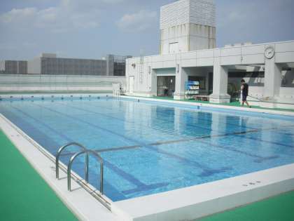 現在のプールの様子です。後期の水泳教室は22日(月)からです。今は小中学校ともに水泳でのプール使用はありませんが、プールの水質は日々管理しています。小中教員が手分けをして行っています。