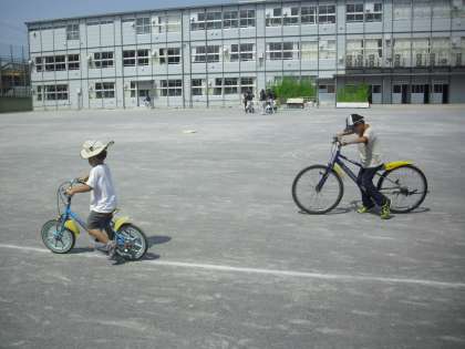 未就学児も参加しました。1時間半でずいぶんと上達した子どももいました。並んで乗る順番を守ったり、小学生が自転車を支えてあげたりする場面も見られました。