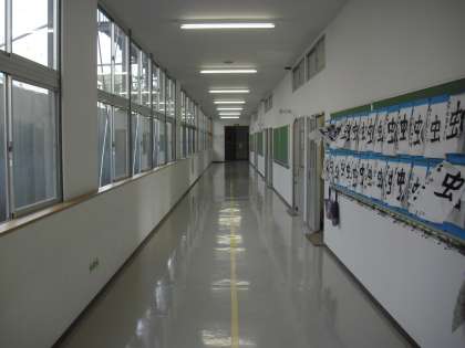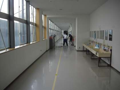 ワックスを丁寧に塗って、乾くとやはり、天上と廊下を鏡に映したようにピカピカになりました。子どもたちが2学期も気持ちよく生活できます。