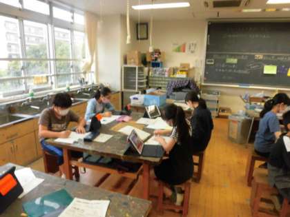 7月1日(木)4校時、第1図工室では、6年生が図画工作「お気に入りの場所」の学習に取り組んでいました。