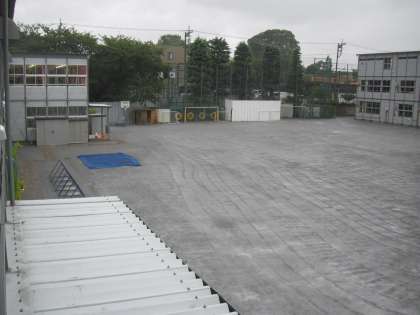 午前10時前から降り出した雨。時々強く降ったり、雷が鳴ったりしています。校庭にも雨水がたまってきました。気温が低くなり、風は涼しいです