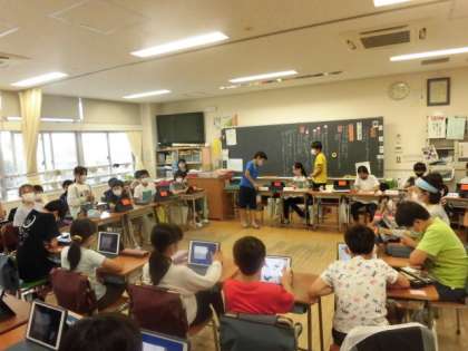 子供たちは、タブレットを使いながら、どんなキャラクターにするのかを考え、意見を発表していました。