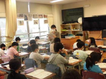 7月2日(金)4校時、5年3組の教室では、家庭科「お茶を入れよう」の学習に取り組んでいました。