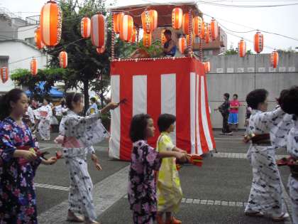 粕谷区民センターで行われた「夕涼み会」の様子です。芦花小学校の子どもたちも来ていました。盆踊りを中心に、様々な出店が並んでいました。過ごしやすい涼しい一日でした。