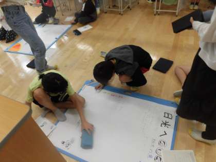 子供たちは、グループごとに調べたことを1枚の模造紙にまとめていました。