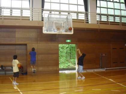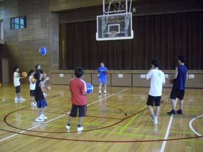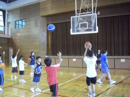 サマーワークショップ「楽しいバスケットボール教室」の最終回です。ジャンプしながらのシュートの練習です。