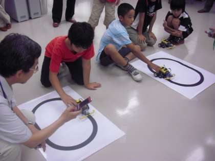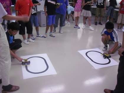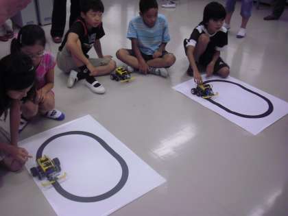 最後に、グループ毎に車の名前を付け、1周のタイムを競うタイムトライアルを行いました。よい記録が出る度に驚きの声が上がりました。