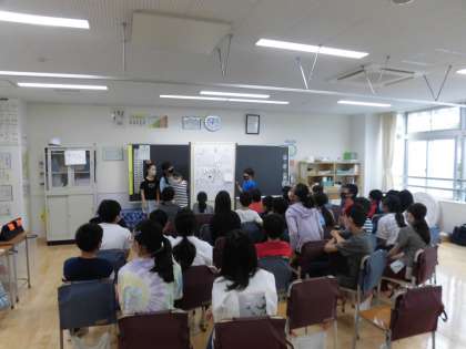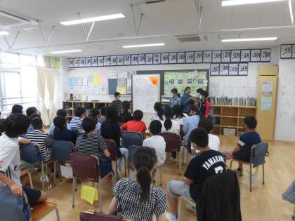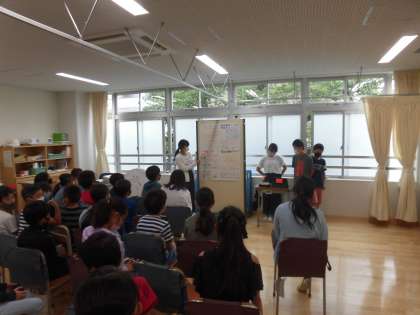 発表を聞いている子供たちも真剣に耳を傾けて聞いていました。クイズに正解すると、みんなで盛り上がりました。