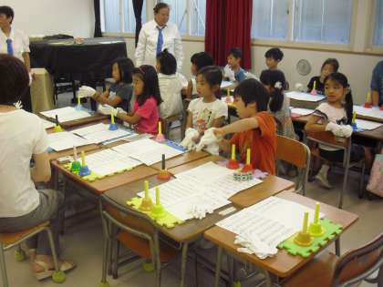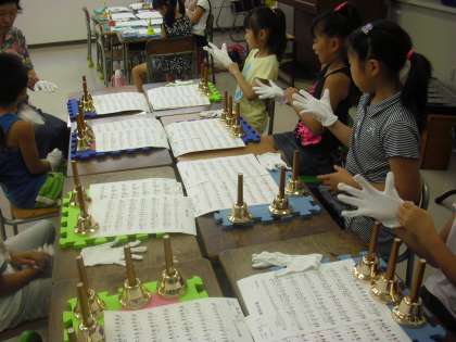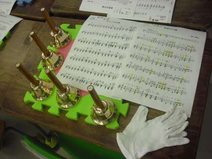 ベルの扱い方の説明を受けている様子です。直接手でふれずに必ず手袋をして扱います。