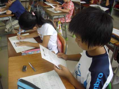 学級活動の授業の様子です。各自の2学期のめあてを考えているところです。学習面、生活面等、子どもたちは一生懸命考えて自分の目標を決めていました。