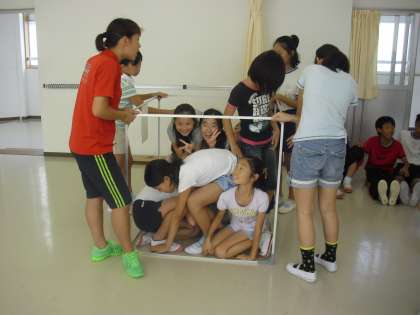 少人数指導の1クラスでは、1立法メートルの量について、子どもたちが立方体の中に入ることで、その量を考えるようにしました。何人は入ることができたでしょう。
