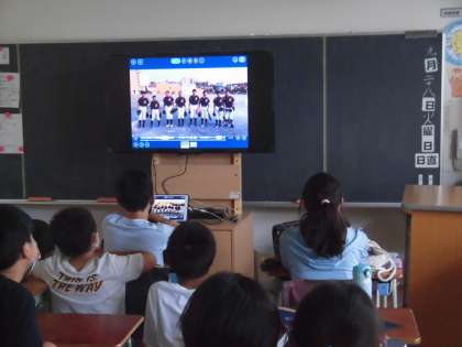各教室を見て回り、中学校の授業の様子や校舎を見学し、教室に戻った後は学校と部活動の紹介動画を見ました。