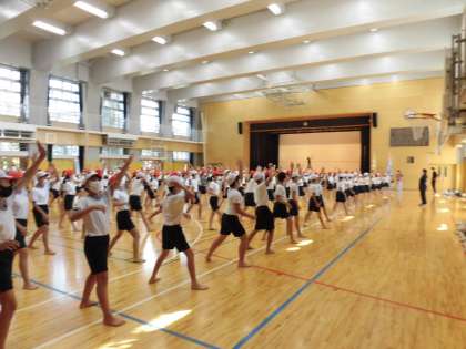 10月5日(火)5・6校時、校庭と体育館では、6年生が体育学習発表会に向けて「ソーラン節」の練習に取り組んでいました。