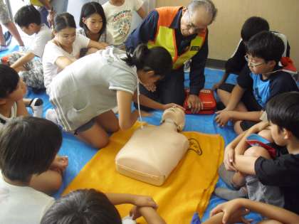 6年生の救命救急講習の様子です。さすがに落ち着いている6年生。心臓マッサージもAEDもしっかりと行っていました。