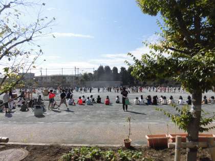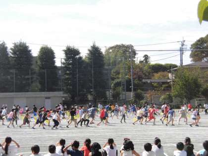10月8日(金)校庭では、5年生が体育学習発表会で披露する「御神楽」のリハーサルを行っていました。