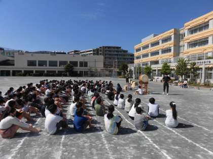 10月8日(金)5校時、校庭では6年生が明日の体育学習発表会に向けて前日準備を行っていました。