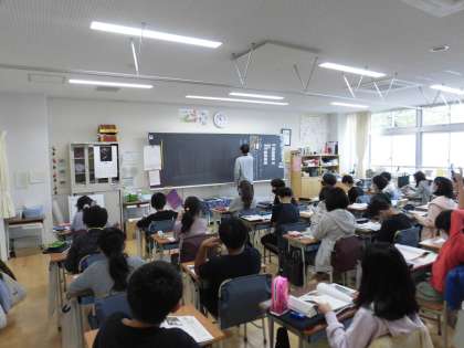 10月13日(水)4校時、6年2組の教室では、道徳「緑の闘志−ワンガリ・マータイ」の学習が行われていました。
