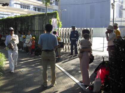 今朝のあいさつキャンペーンの様子です。上から郵政公社前、西門、南西門です。地域の方々と子どもたちが「おはようございます」とあいさつを交わします。