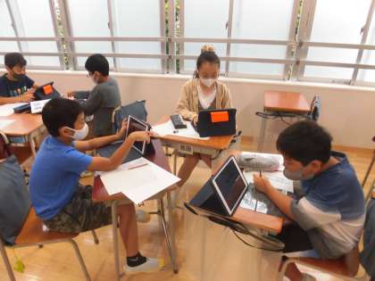 子供たちは、タブレットを使って、オリンピック・パラリンピックについて調べて、グループごとに意見を出し合いました。