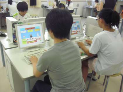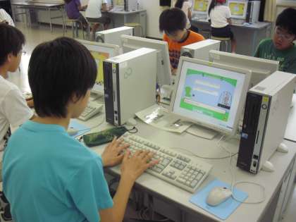 パソコンクラブの活動の様子です。今日は、タイピングのゲームを行っていました。中には、とても早くローマ字打ちができる子もいました。