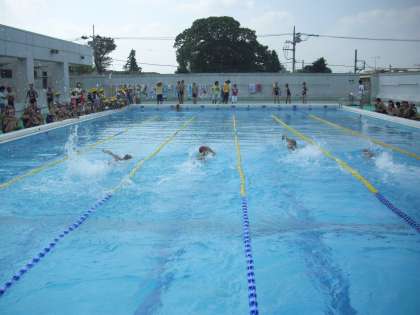 明日の水泳記録会のために1年生が応援にやってきました。「がんばれ〜」とかわいい声援を送ります。6年生はきっとがんばってくれます。