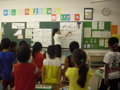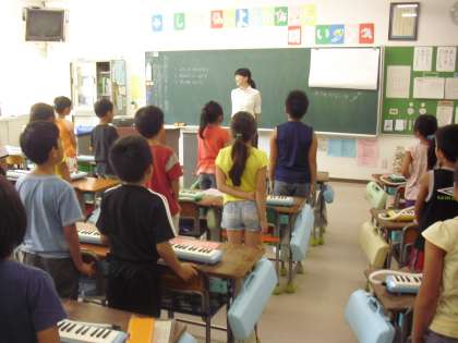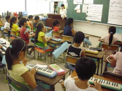 2年生の音楽の授業の様子です。「かっこう」に取り組んでいます。歌詞と階名で歌って、最後は鍵盤ハーモニカで演奏しました。