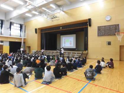 10月27日(水)2校時、体育館で、6年生のセーフティ教室「薬物乱用防止」の授業が行われていまいた。