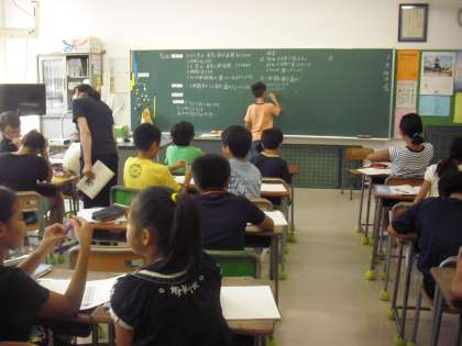 6年生の算数少人数指導の授業の様子です。「速さ」の学習に取り組んでいるところです。どの教室でも友達の問題への考え方を共有しながら、自分の考えと比べながら自分の考えを練り上げていました。