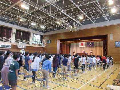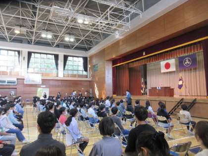 11月4日(木)5・6校時、中学校体育館では、開校60周年記念式典の予行練習が行われていました。予行練習には、小学校6年生と中学校3年生が参加しました。