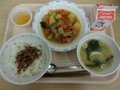 11月8日「いい歯の日」に合わせて、今日はじゃこをたっぷり使い、甘辛く味付けした「かみかみ佃煮」です。白いご飯がとてもすすみます。何より、手作りがうれしいですね。