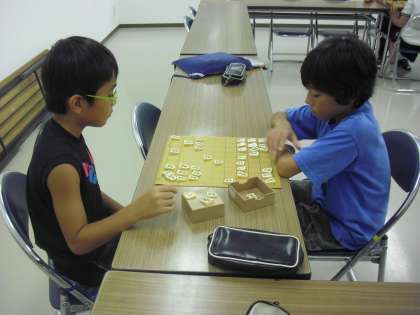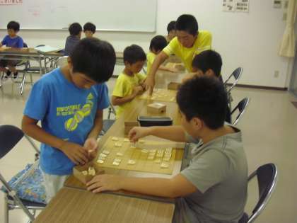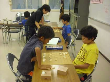 囲碁・将棋クラブの様子です。みんなで将棋を楽しんでいます。高学年がアドバイスをすることもあります。