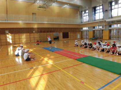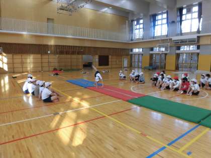 今日の学習は、練習してきた技を発表しました。子供たちは、緊張した様子でしたが、これまでに練習した成果を発揮して、技を披露していました。友達と協力して取り組んできたので、みんな真剣な表情で友達の技を見ていました。できたときは、とても喜んでいました。