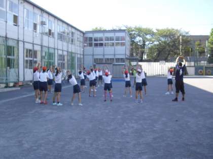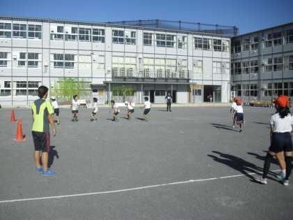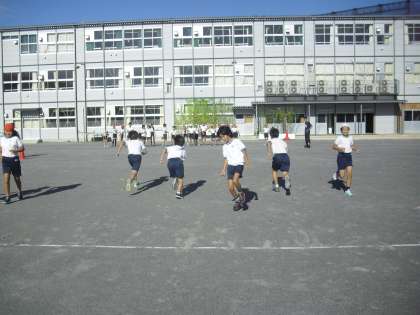 早朝の校庭の様子です。5年生が体力づくりに取り組んでいるところです。ストレッチの後、体の切り返しを取り入れたダッシュを行いました。みんながんばっていました。