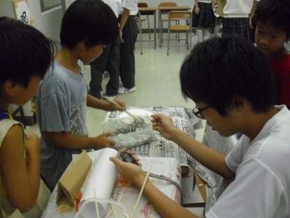 中学生のお店の様子です。「じみ〜ず リターンズと呪いの宝探し」です。様々なコーナーがありますが、小学生にやさしく教えてくれます。